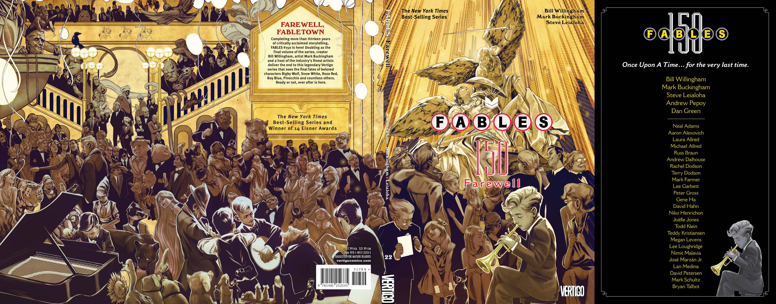 It's the final trade paperback volume of FABLES! No, wait - it's FABLES #150, the grand finale of the best-selling, award-winning comic book series! And it's also an original graphic novel in the tradition of 1001 NIGHTS OF SNOWFALL! Yes, it's all this and more! Join us for 150 - that's, right, 150! - pages of new stories starring your favorite Fables, all from the mind of Bill Willingham. It all starts with an 80-page lead story illustrated by series regulars Mark Buckingham and Steve Leialoha, plus stories illustrated by Mark Schultz, Gene Ha, Neal Adams, Andrew Pepoy and many more!